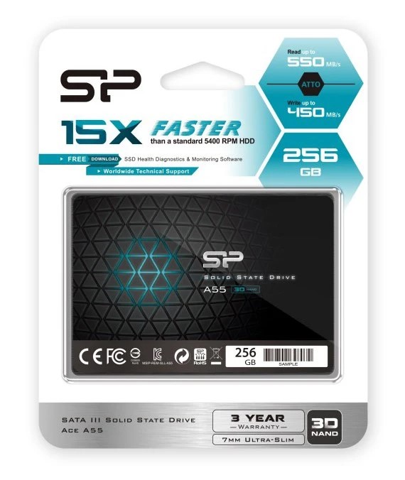 SILICON POWER SSD A55 256GB, 2.5", SATA III, 550-450MB/s 7mm, TLC