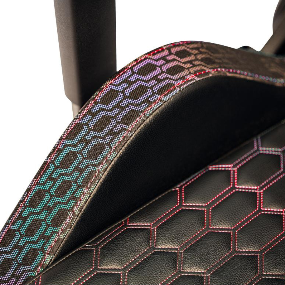 Καρέκλα gaming με ανθεκτικό PU δέρμα και μαξιλάρια από χυτό αφρό για άνεση, εξοπλισμένη με στιβαρό μεταλλικό σκελετό και σταθερή πεντακτινωτή βάση, με επενδεδυμένα μπράτσα που προσφέρουν 3D ρυθμίσεις σε ύψος, γωνία και μήκος για την ιδανική θέση ώμων, αγκώνων και χεριών. Το ύψος καθίσματος ρυθμίζεται από 47 έως 56 cm. Η πλάτη προσαρμόζεται σε γωνία από 90 έως 150 μοίρες για τη βέλτιστη άνεση. Οι τροχοί 60 mm από νάιλον με επικάλυψη μαλακής πολυουρεθάνης είναι κατάλληλοι για σκληρές και μαλακές επιφάνειες. Η ενισχυμένη βάση με χαλύβδινο σκελετό, τροχούς και ανυψωτικό αερίου κατηγορίας ασφαλείας 4 υποστηρίζει βάρος έως 130 κιλά.