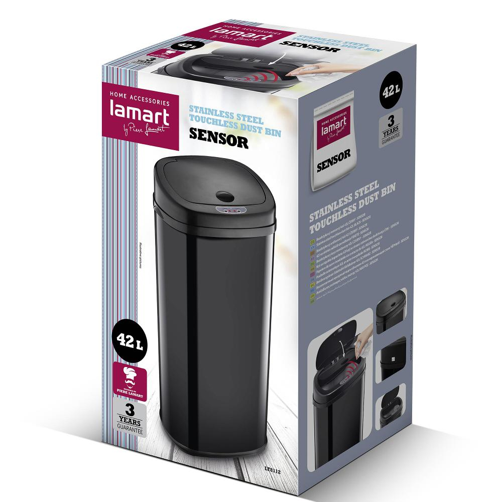 Κάδος Απορριμμάτων απο Ανοξείδωτο Ατσάλι με Φωτοκύτταρο 42lt SENSOR Lamart LT8112 Μαύρος