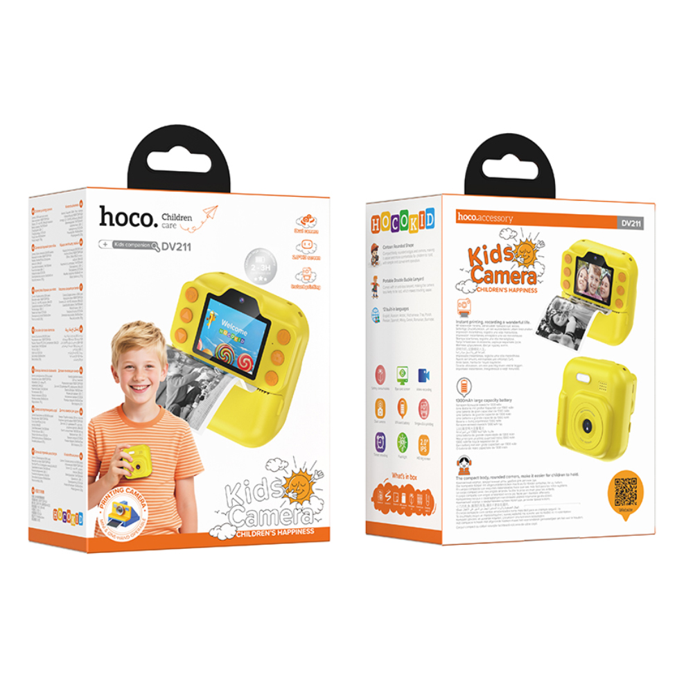 Kids Dual HD Camera Hoco DV211 με Οθόνη 2.0" 1300mAh με 2GB Κάρτα Μνήμης και Δυνατότητα Εκτύπωσης Φωτογραφιών Κίτρινη-Πορτοκαλί