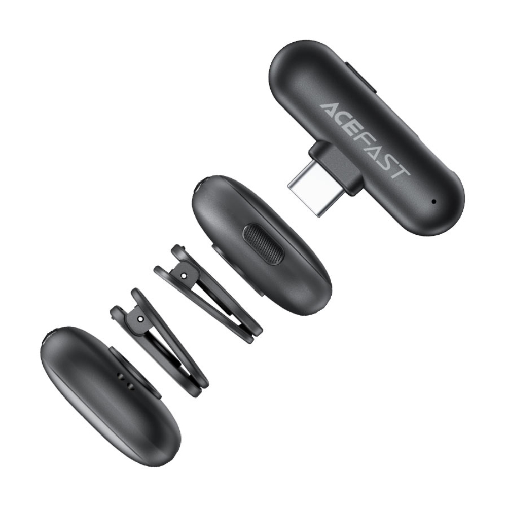 Σετ 2 Μικρόφωνα Πέτου Lavalier Acefast R1 HD AI Μείωση Θορύβου, Ακτίνα 50m και 48hr Διάρκεια Μπαταρίας με USB-C Transmitter και Θήκη Φόρτισης Μαύρο
