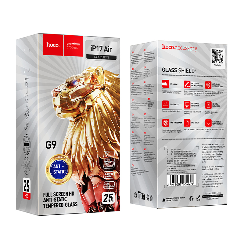 Tempered Glass Hoco G9 Full Screen HD για Apple iPhone 17 Air Σετ 25 τεμ.