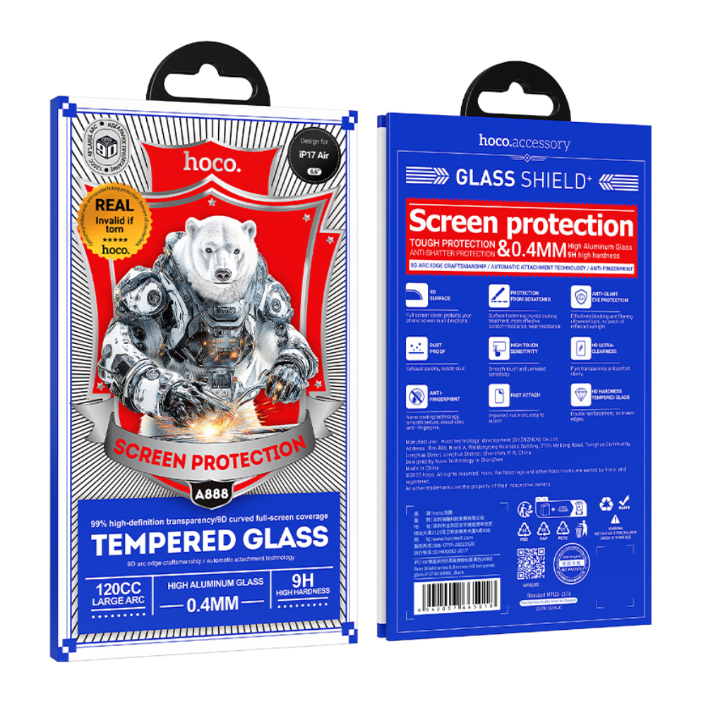 Tempered Glass Hoco Bear Shield A888 HD 4H 0.4mm Large Arc για Apple iPhone 17 Air