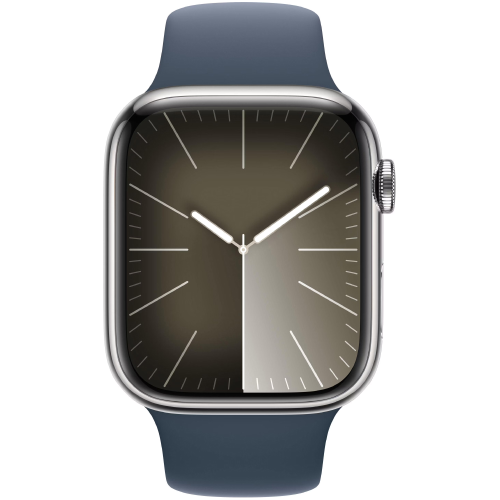 Apple Watch Series 9 45mm GPS eSIM NFC IP6X Stainless Steel Case Silver με Storm Blue Band MRMN3QF/A