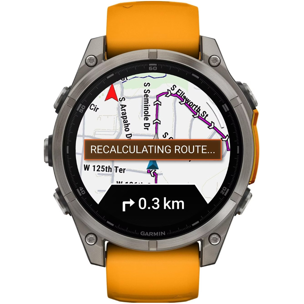 Garmin Watch Fenix 8 Titanium 47mm GPS NFC 10 ATM με Δυνατότητα Κλήσεων Sapphire Titanium with Spark Orange and Graphite Silicone Band