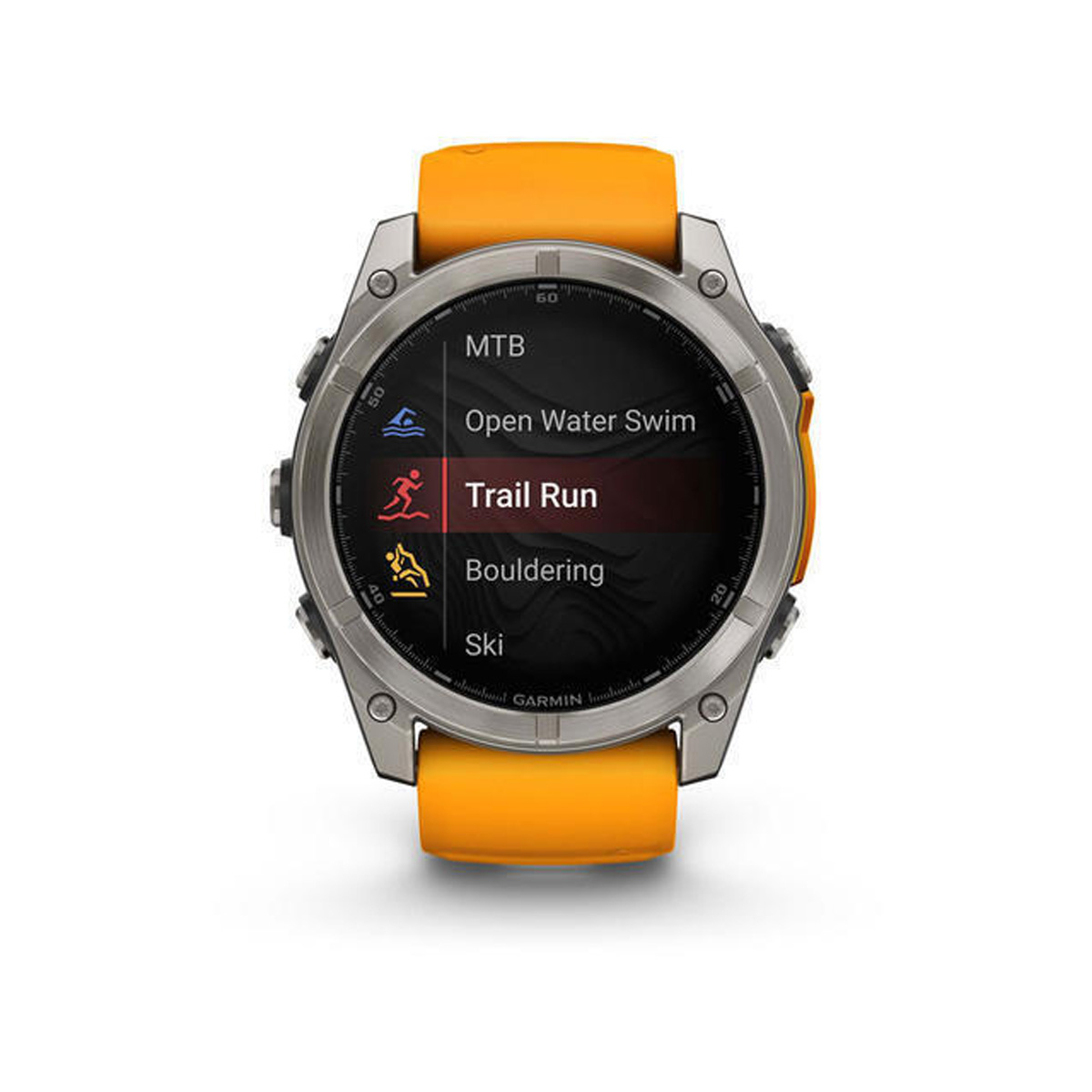 Garmin Watch Fenix 8 Titanium 51mm GPS NFC 10 ATM με Δυνατότητα Κλήσεων Sapphire Titanium with Spark Orange and Graphite Silicone Band