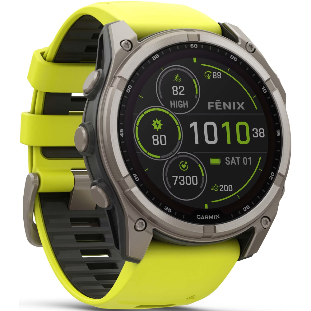 Garmin Fenix 8 Solar Titanium 51mm GPS NFC 10 ATM με Δυνατότητα Κλήσεων Sapphire Titanium With Amp Yellow/Graphite Silicone Band